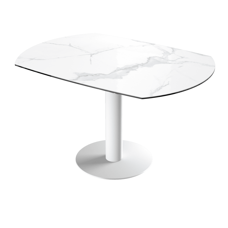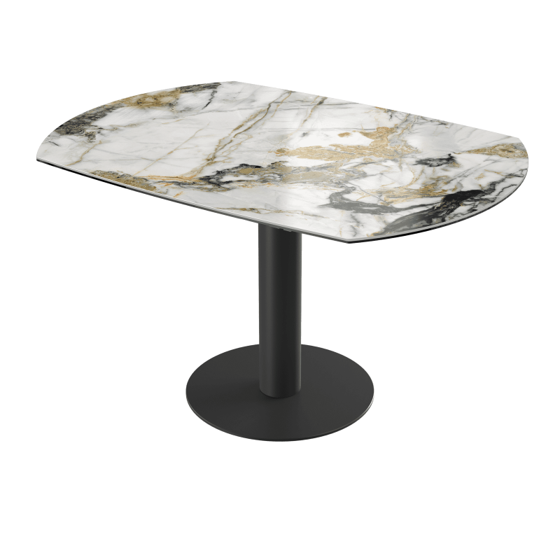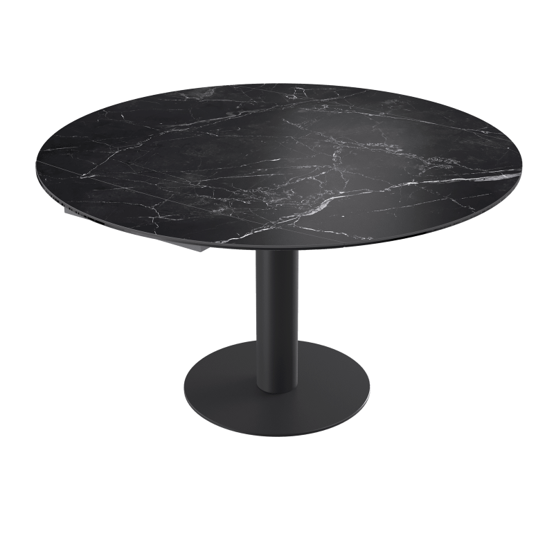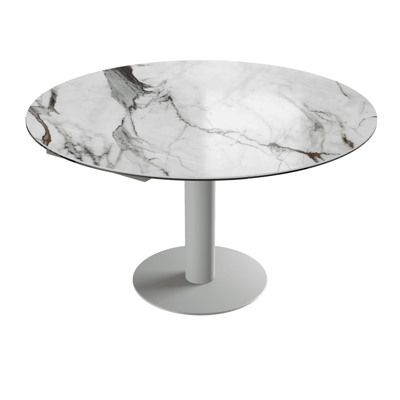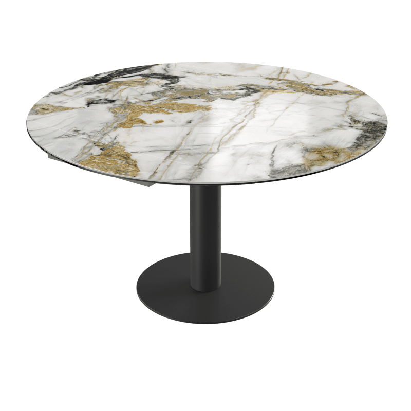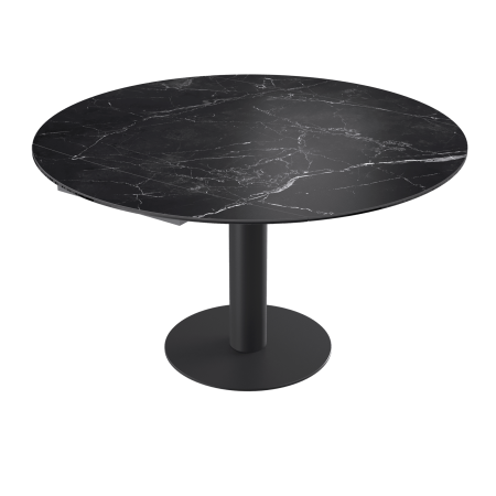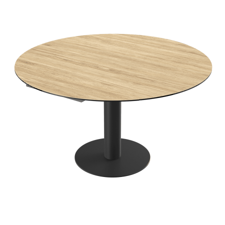 La table Luna est une table de repas avec 2 rallonges cachées sous le plateau. En pivotant le plateau central, les 2 rallonges sortent automatiquement. Elle se transforme en table ronde de 135cm ou de 150 cm de diamètre.